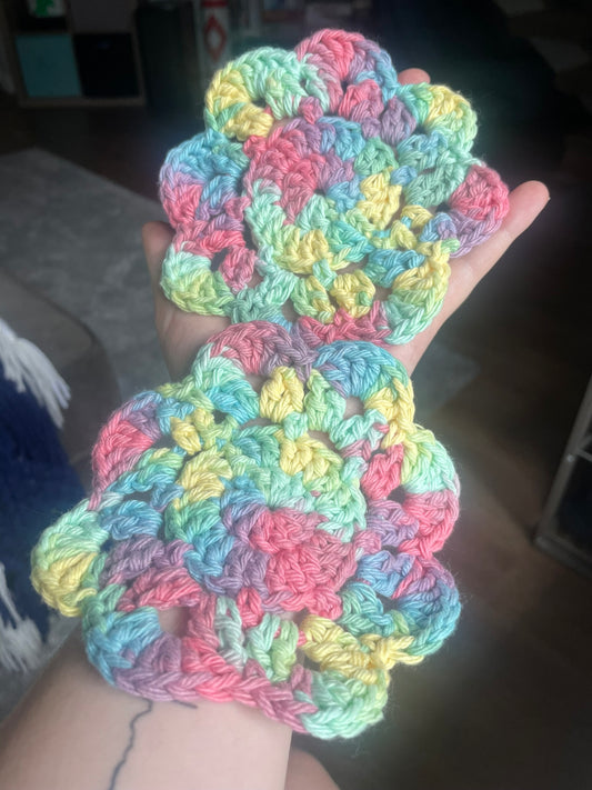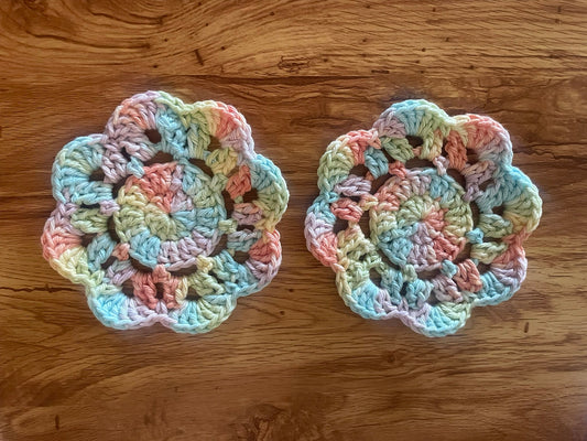 Handcrafted Crochet Flower Coasters | Unique Home Decor | Soft Rainbow