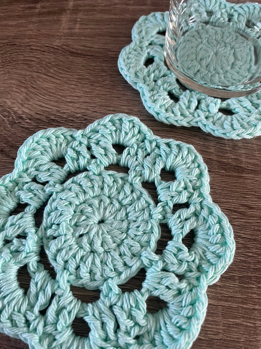 Handcrafted Crochet Flower Coasters | Unique Home Decor | Icy Blue