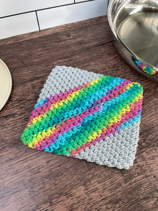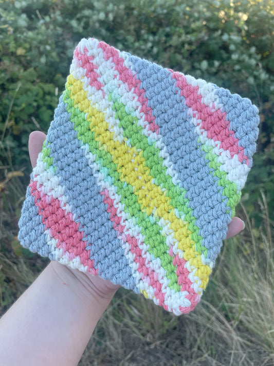 Double-Thick Cotton Crochet Potholders | Rainbow Striped