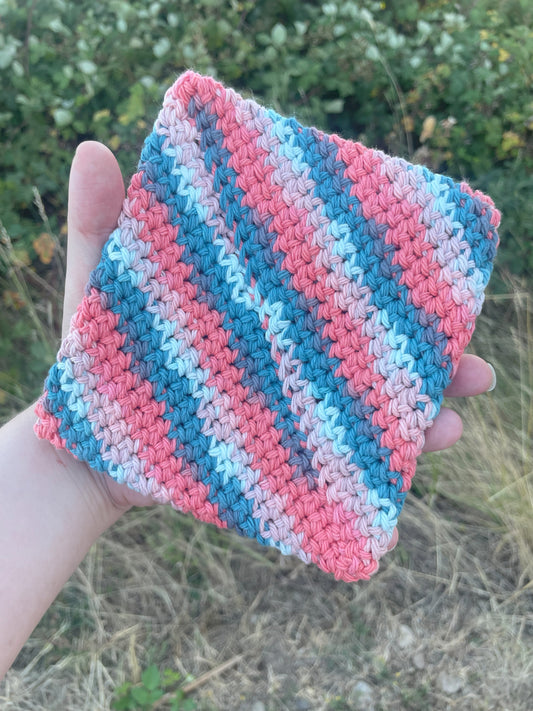 Double-Thick Cotton Crochet Potholders | Pink and Blue | Multicolored and Striped
