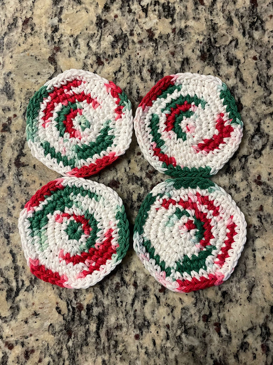 Handmade Cotton Christmas Coasters – Festive Red, Green, and White