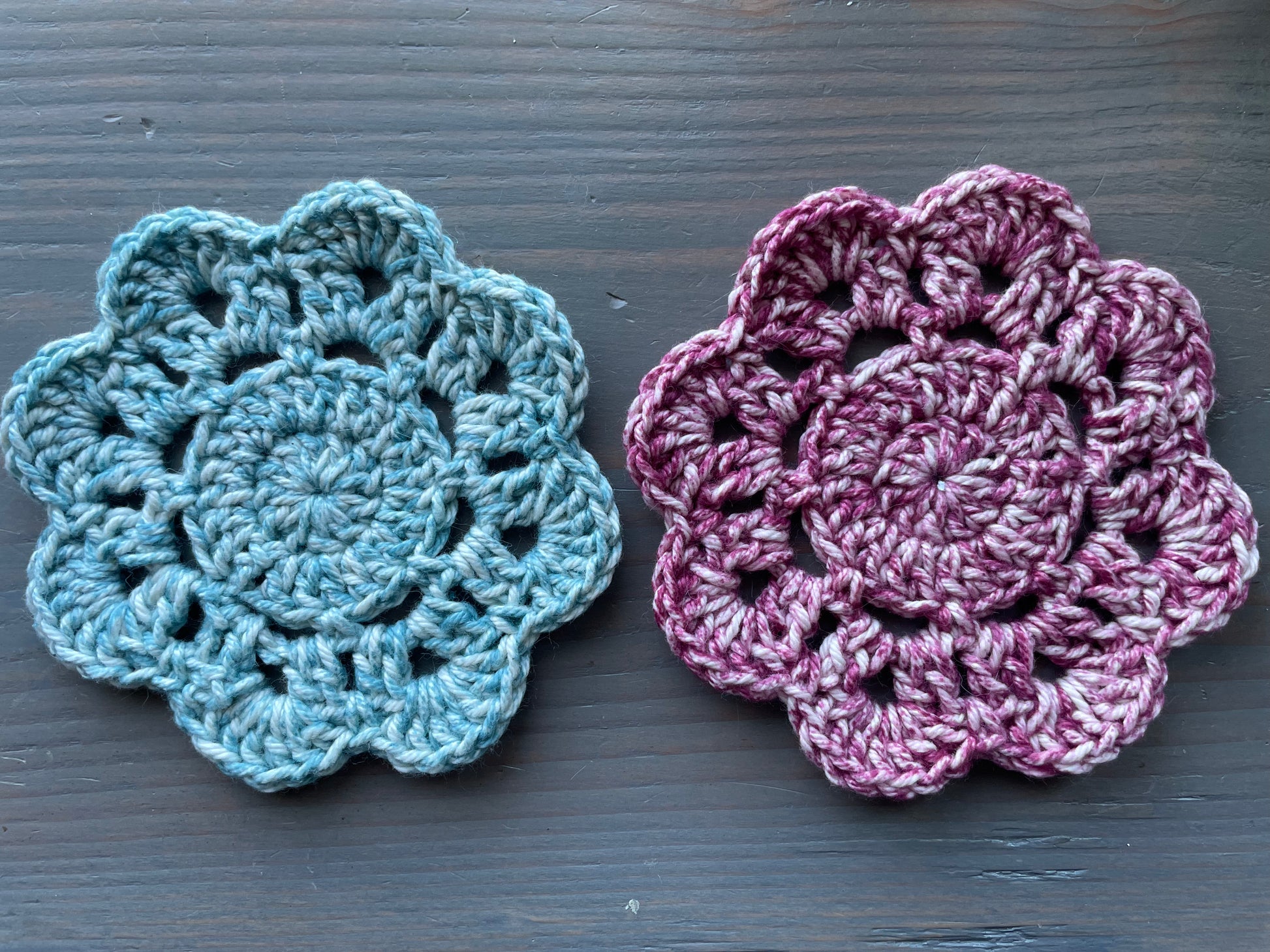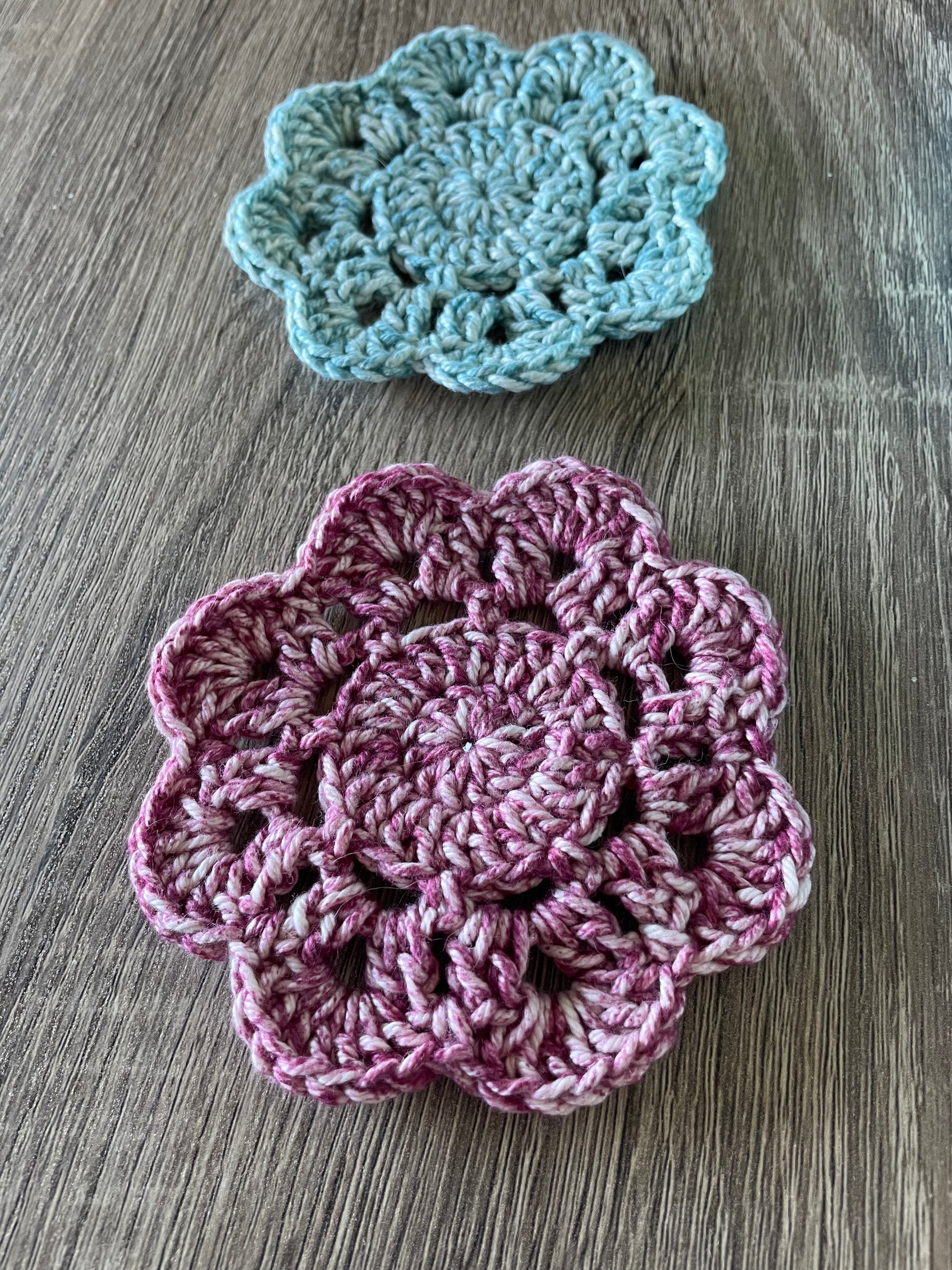 Handcrafted Crochet Flower Coasters | Unique Home Decor | Pink and Blue Tie-Dye